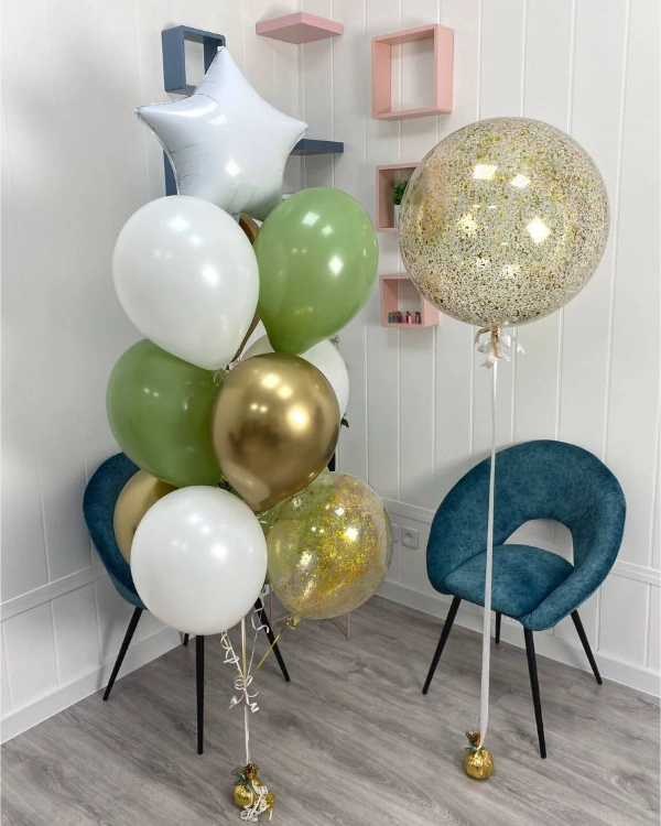 Шары с глиттером или конфетти: Внутри шара находится блестящее наполнение.